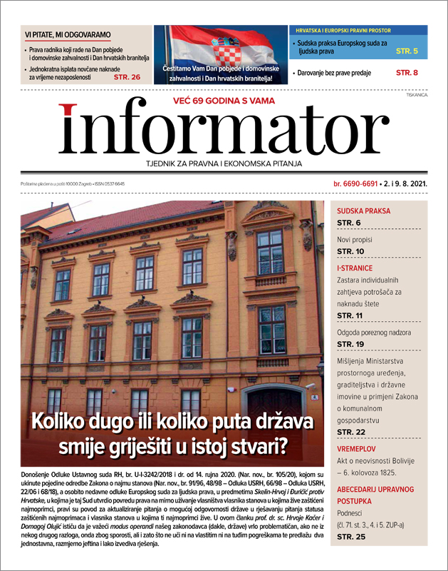 Donošenje Odluke Ustavnog suda RH, br. U-I-3242/2018 i dr. od 14. rujna 2020. (Nar. nov., br. 105/20), kojom su ukinute pojedine odredbe Zakona o najmu stanova (Nar. nov., br. 91/96, 48/98 – Odluka USRH, 66/98 – Odluka USRH, 22/06 i 68/18), a osobito nedavne odluke Europskog suda za ljudska prava, u predmetima Skelin-Hrvoj i Đuričić protiv Hrvatske, u kojima je taj Sud utvrdio povredu prava na mirno uživanje vlasništva vlasnika stanova u kojima žive zaštićeni najmoprimci, pravi su povod za aktualiziranje pitanja o mogućoj odgovornosti države u rješavanju pitanja statusa zaštićenih najmoprimaca i vlasnika stanova u kojima ti najmoprimci žive. | | | |